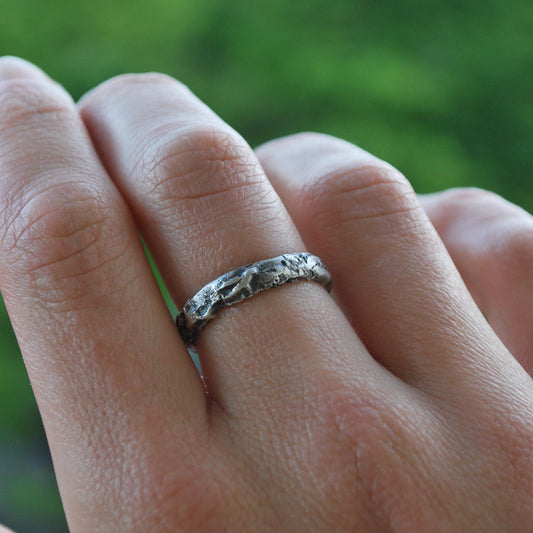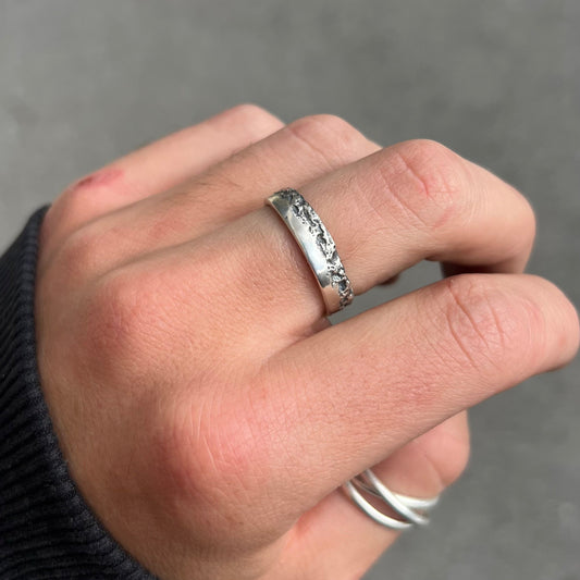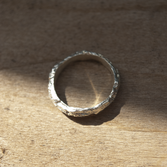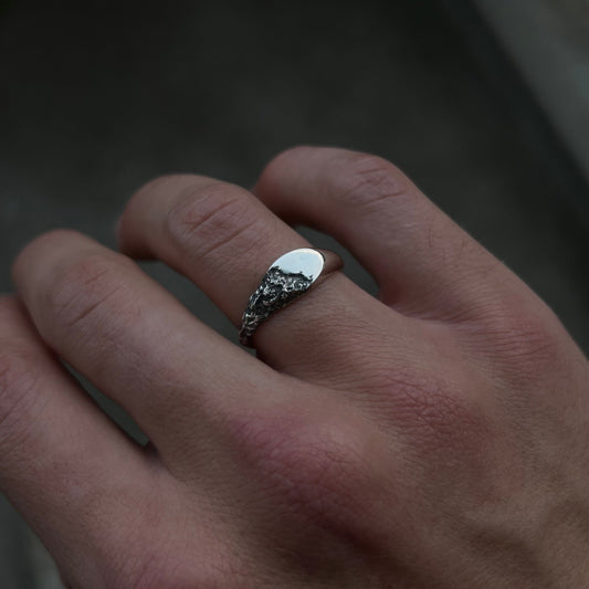 Chevalière brute et organique en argent 925- Fonte Bijoux